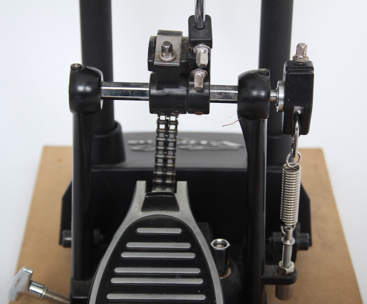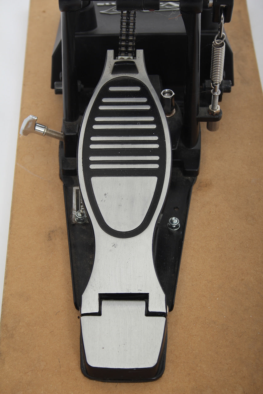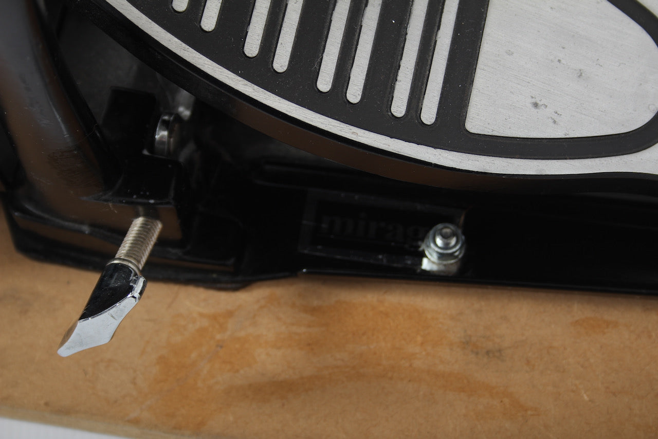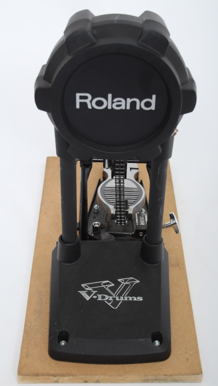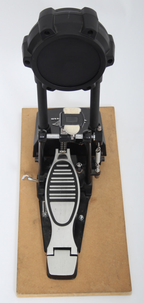 KD-9 bass drum pad with a solid footplate bass drum pedal fixed to to board. Bass pedal and KD-9 pad are therefore one unit which helps to negate any movement or slippage.